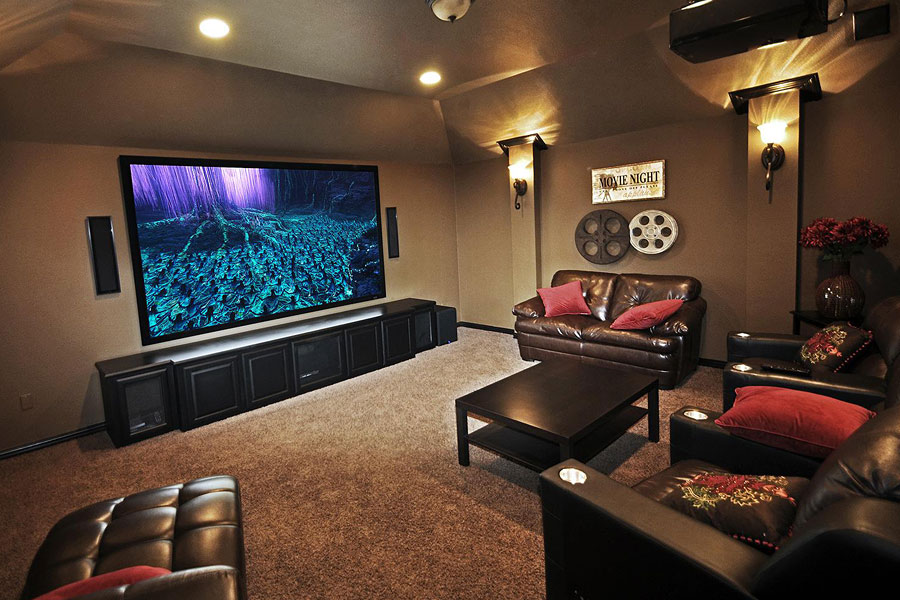 - Если комната без окон используется как библиотека, игровая либо хранилище вин – оптимальным станет устройство четырех угловых светильников поворотного освещения.