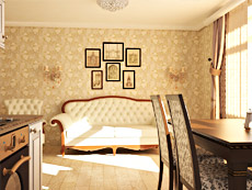 Классический дизайн интерьера квартиры-студии возможен в случае достаточного количества окон. Помещение в интерьер традиционной и даже роскошной мебели требует наличия больших окон по всему периметру студии. Еще одно условие – визуальная совмещенность солидной мебели с современной бытовой техникой должна быть тщательно продумана.