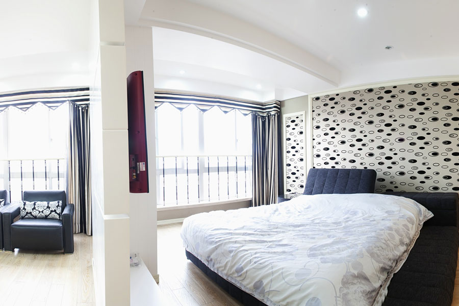 - Спальню можно устроить на стыке балкона и комнаты, а вторую часть комнаты отгородить перегородкой из гипсокартона, в которой проделывается ажурное фальш-окно для освещения. «Дальняя» комната станет детской или кабинетом.